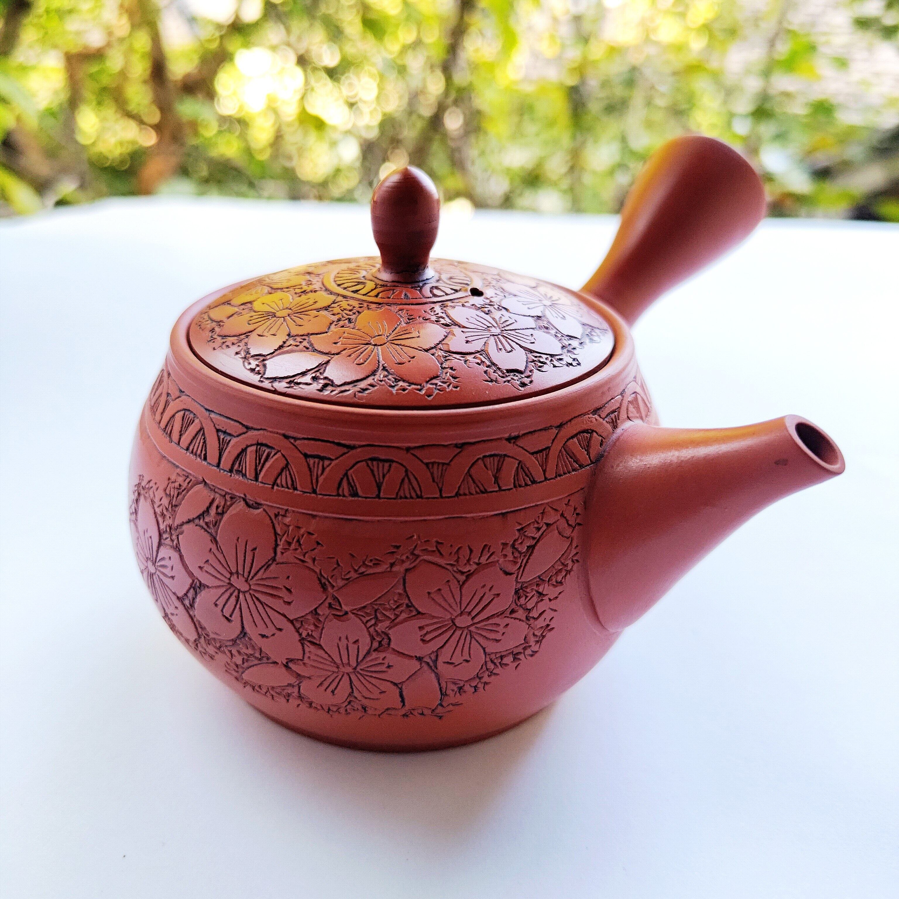 Tokoname-yaki Cherry blossom carving Teapot by Gyokko 玉光作 常滑焼 急須